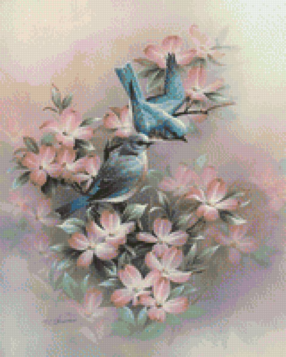 Схема вышивки «синие птицы китайский художник» (№1446347)