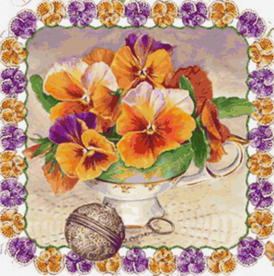 Схемы вышивки, похожие на «Анютки в чашечке» (№146899) по сюжету
