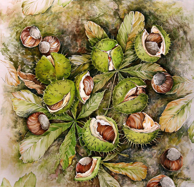 Теги: каштаны, букет, осенний букет, осень, листья.