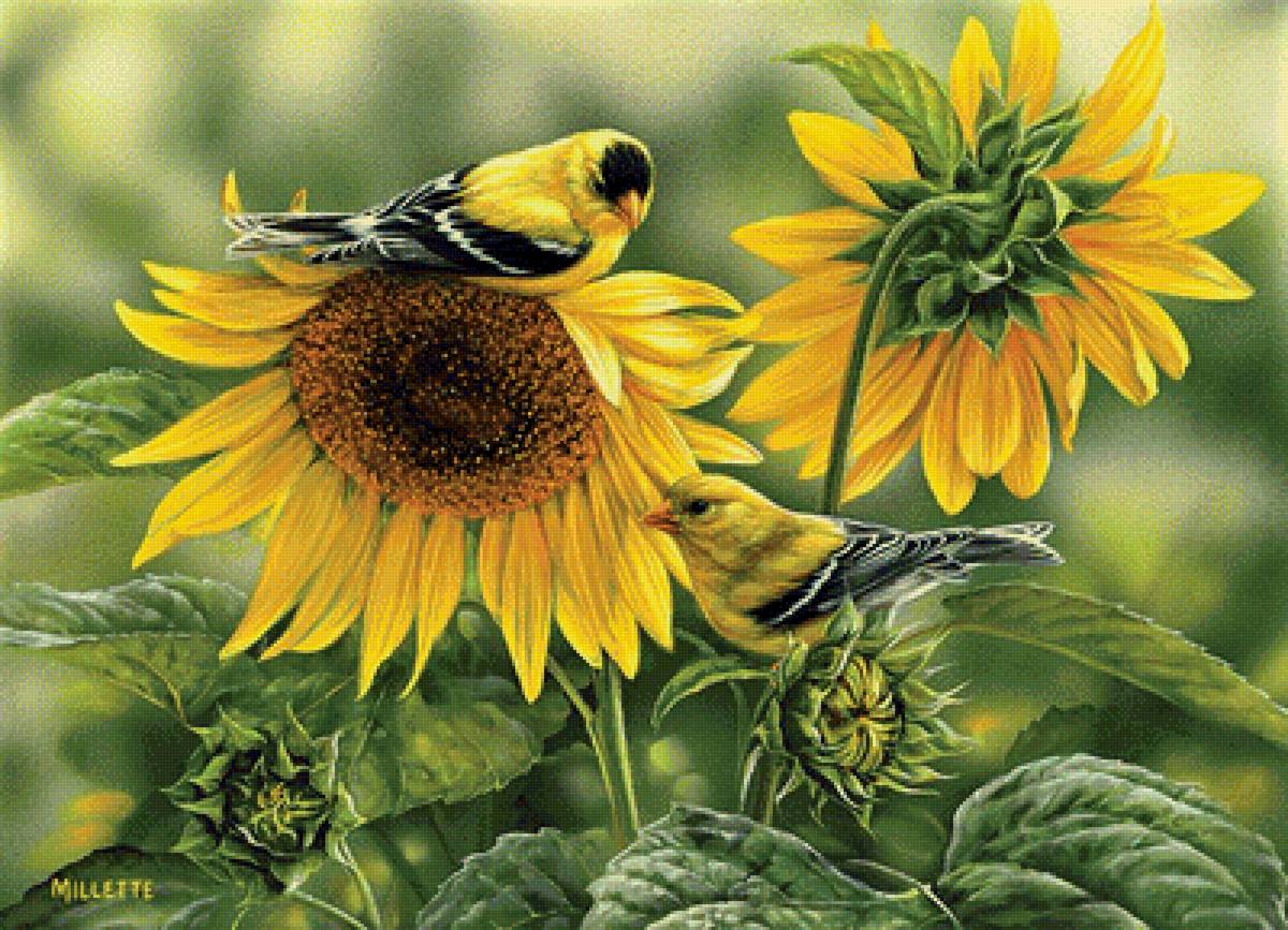 Схема вышивки «Подсолнухи и птицы» (№1497871)