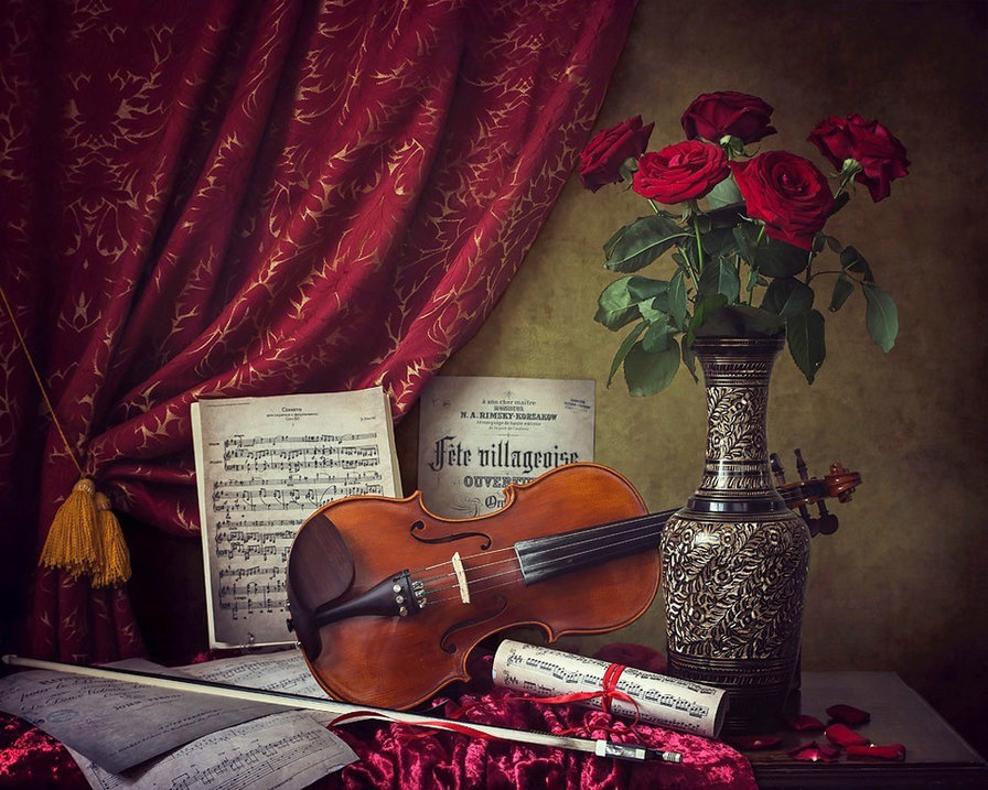 Схема вышивки «Розы и скрипка» (№1499422)
