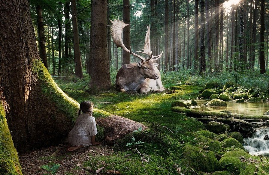 Теги: животные, лес, девочка, живопись, природа, фэнтэзи, арт, девушка.