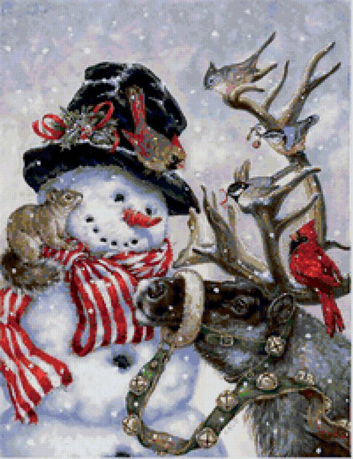Схема вышивки «снеговик и звери» (№151362)