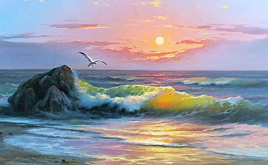 Теги: волна, море, закат, картина, пейзаж.