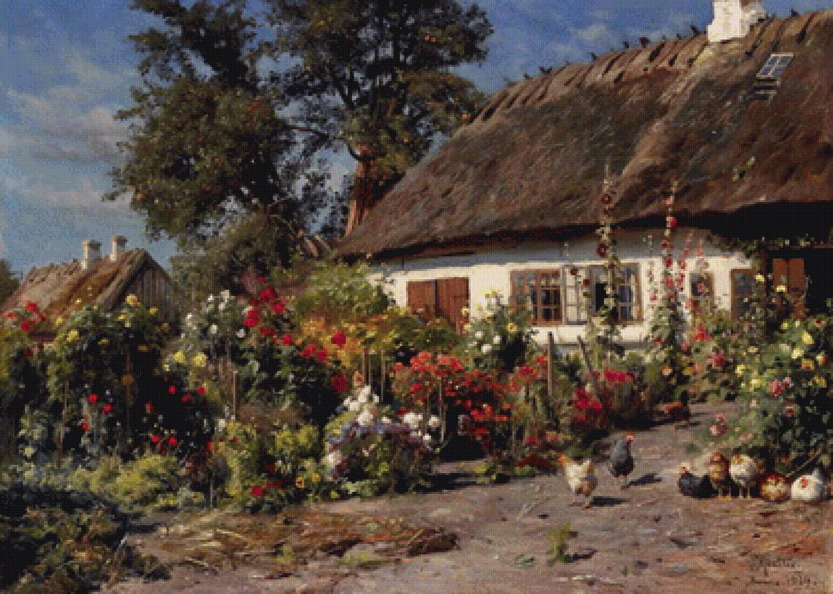 Схема вышивки «Дом в саду с курицами» (№1539945)