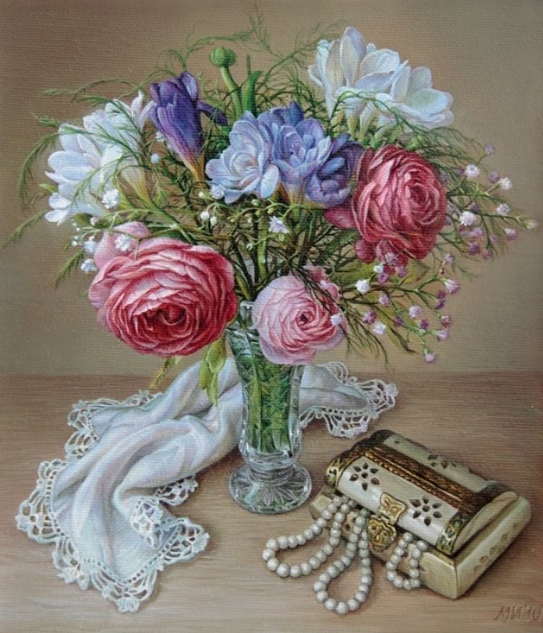 Теги: нежность, натюрморт, ваза, пионы, букет, живопись, цветы.