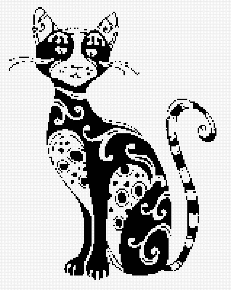 Схема вышивки «кот ажурный 2 монохром» (№1569591)