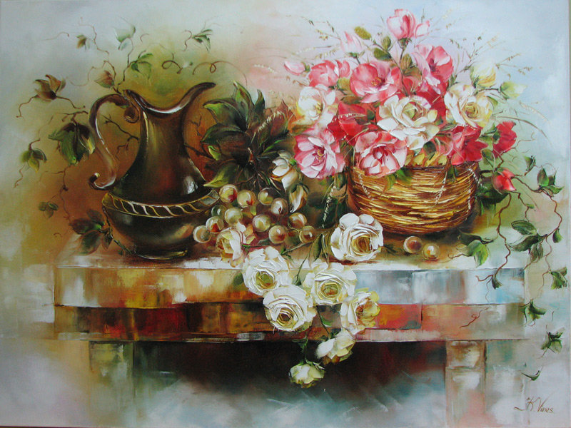 Теги: кухнеа. натюрморт.цветы.лилии.кувшин.