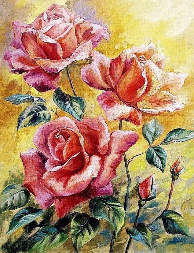 живопись, розы, картина, цветы