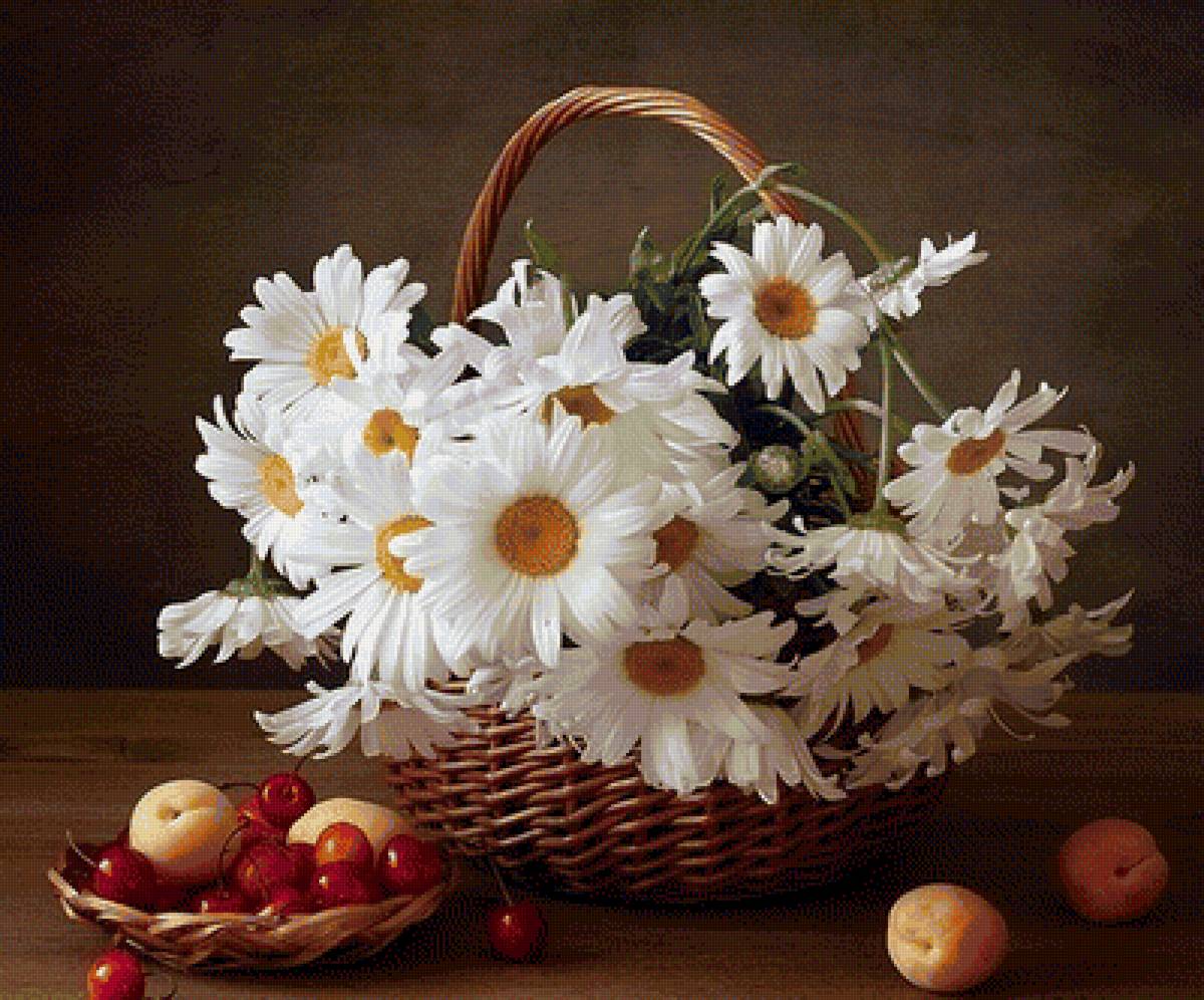 Схемы вышивки, похожие на «натюрморт ромашки» (№1613443) по сюжету