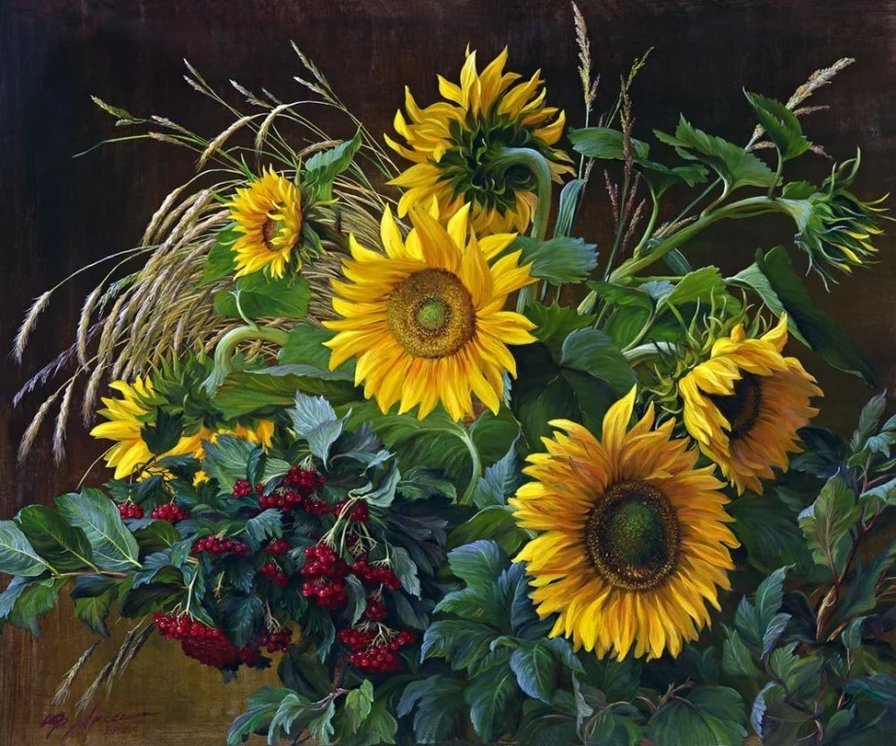 Схемы вышивки, похожие на «Подсолнухи и калина.» (№1622119) по сюжету