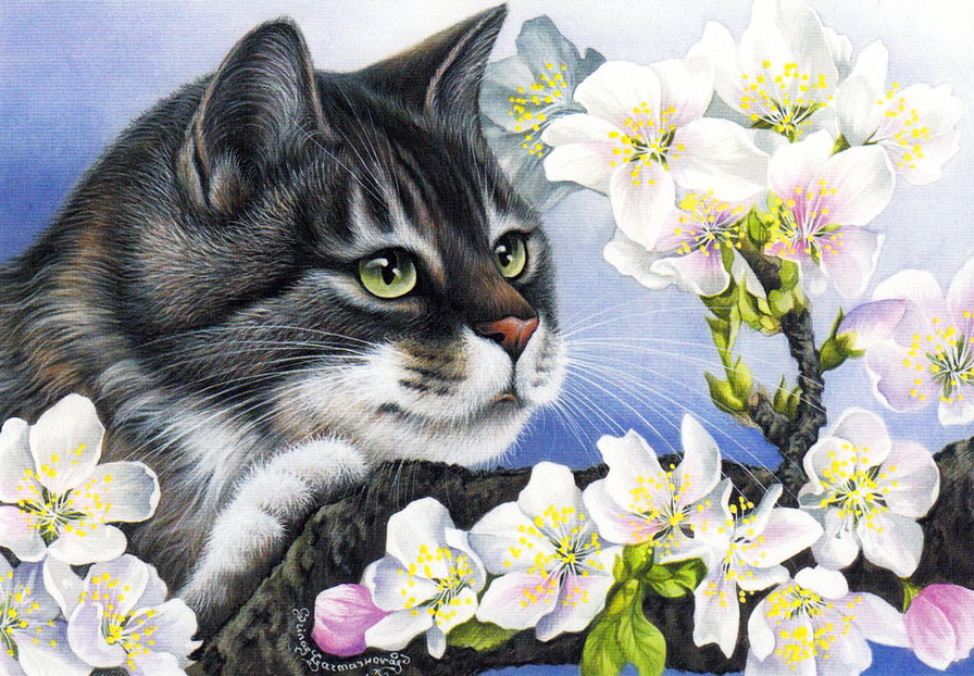 Схема вышивки «Весенний кот» (№1626311)