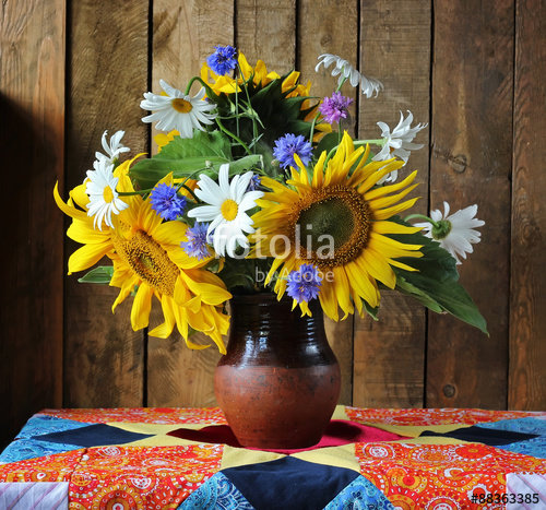 Теги: подсолнухи, цветы, живопись, букет.