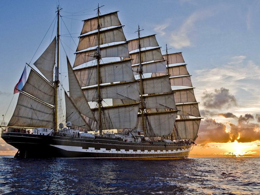 Теги: паруса, море, небо, корабль.