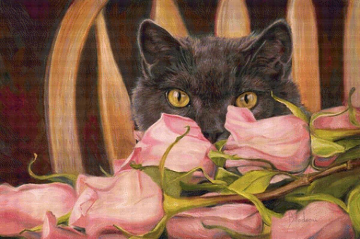 Схема вышивки «Кот и розы» (№1643237)