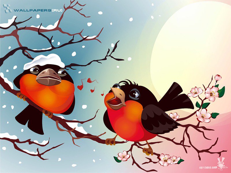 Теги: зима, снег, елки, снегири.
