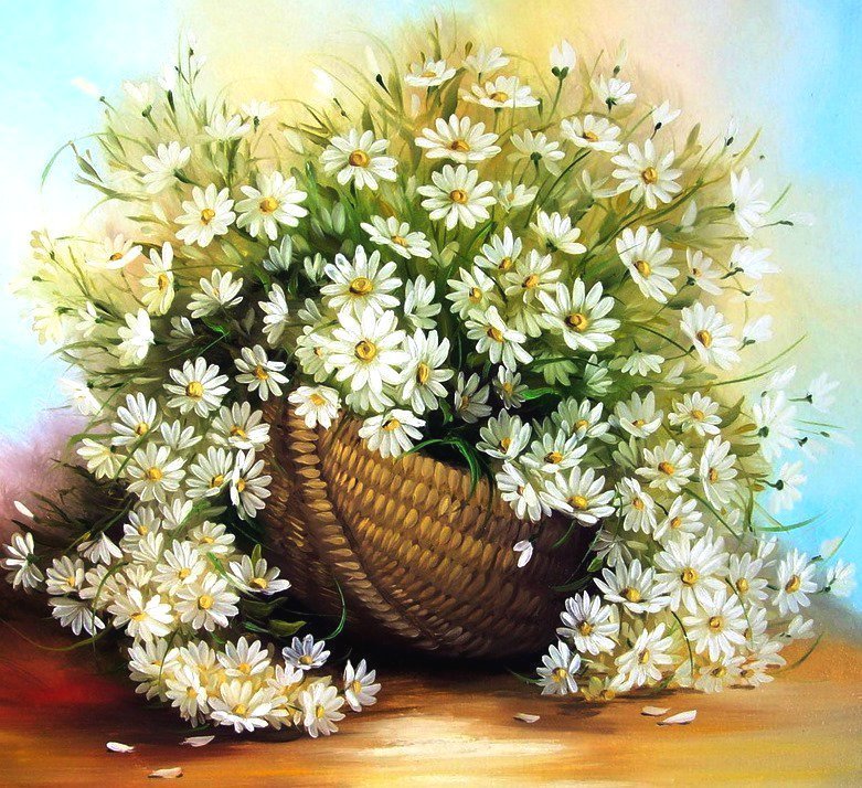 Теги: картина, цветы, ромашки.