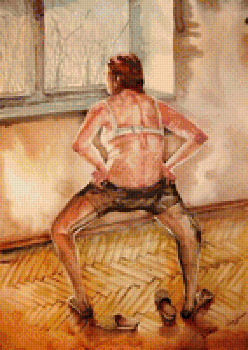 Схемы вышивки, похожие на «Женщина, надевающая колготки» (№1681637) по сюжету