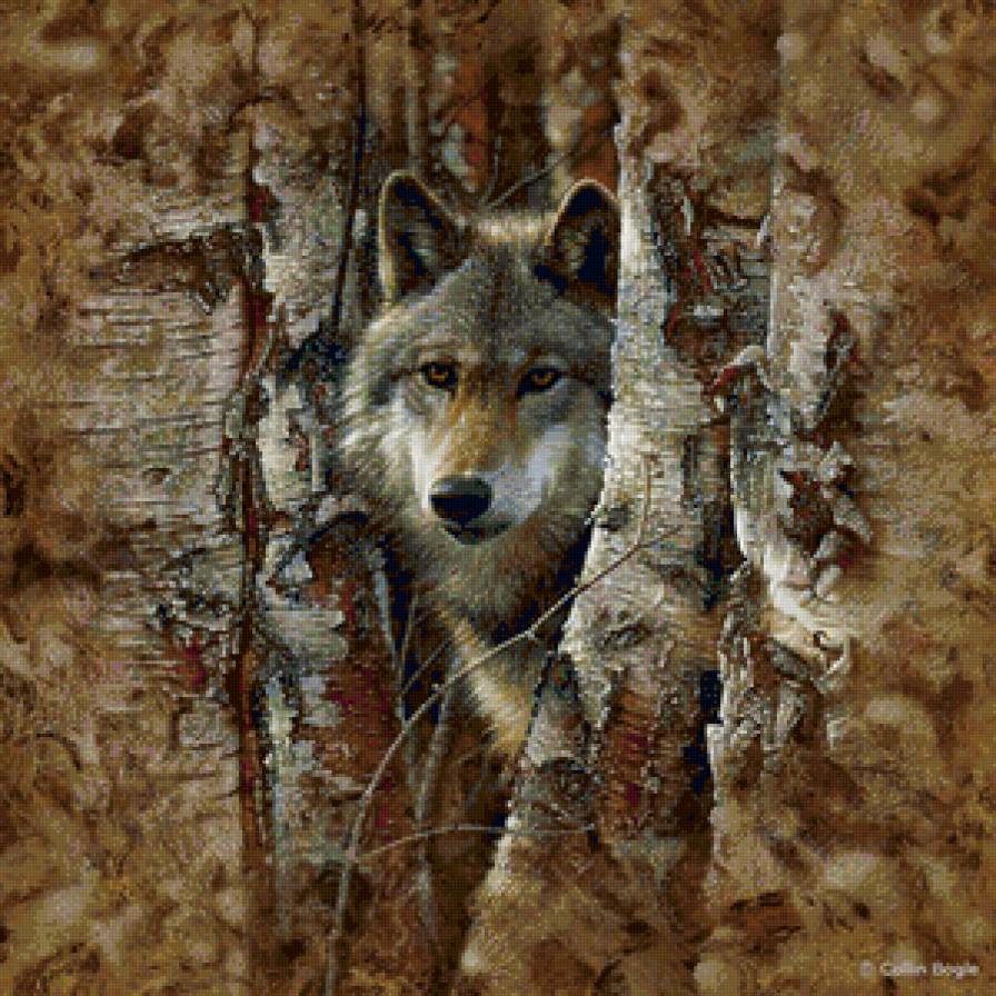 Схема вышивки «Волк в лесу» (№168259)