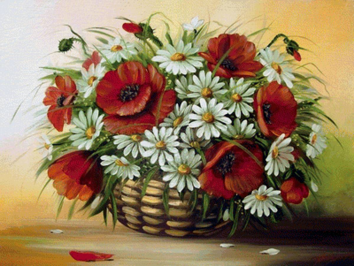 Схемы вышивки, похожие на «маки и ромашки» (№1692215) по сюжету