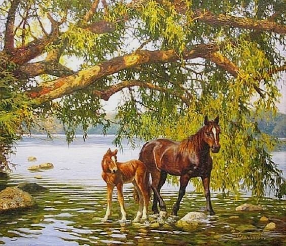 Деревья блёклые,лошади в грязных пятнах!