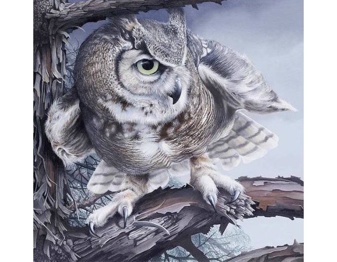 Теги: живопись, сова, филин, птица, хищник.