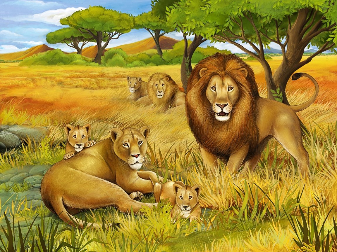 Схемы вышивки, похожие на «Семейство львов» (№1718408) по сюжету