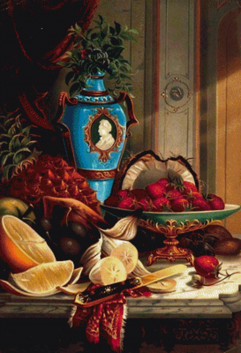 Схема просто"идеальная“! На картине штора ,как бы цвета бордо,а в схеме она вся чёрная!