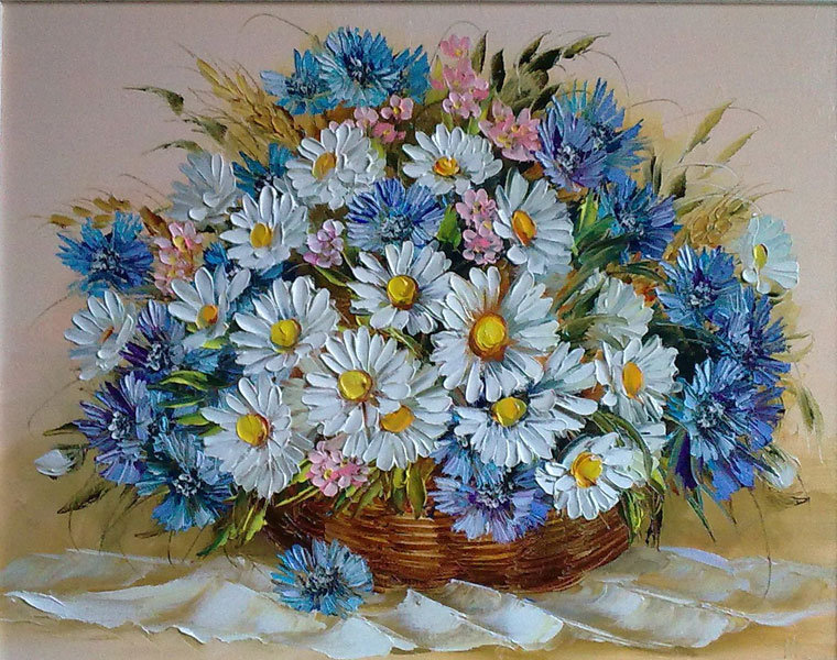 Комментарии к схеме вышивки «ромашки с васильками» (№172423)