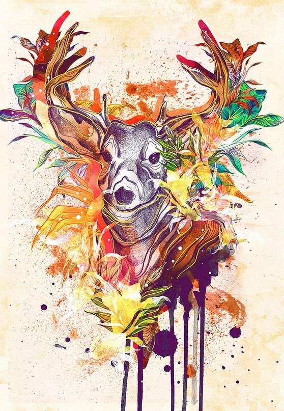 Схема вышивки «Олень акварелью» (№1742990)