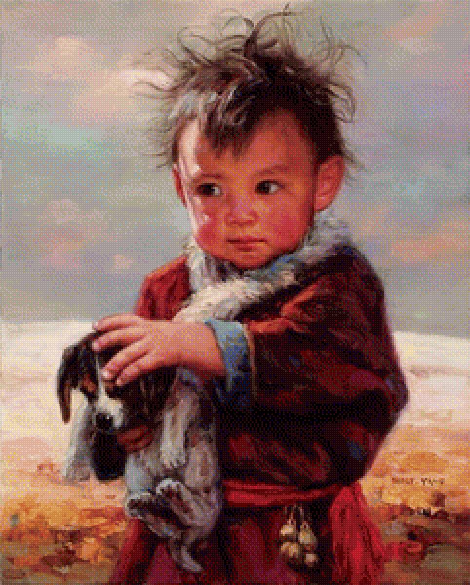 Схема вышивки «Мальчик со щенком» (№1744881)