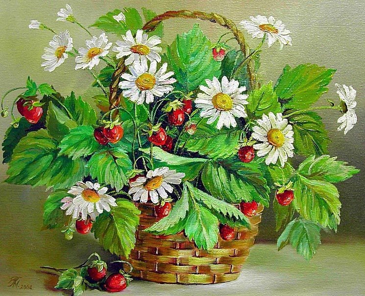 Схема вышивки «Ромашки и земляника» (№1748772)