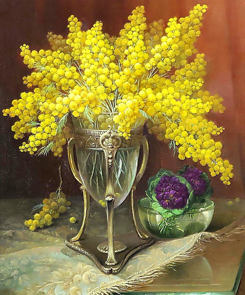 Схема вышивки «Натюрморт с мимозой.» (№1750741)