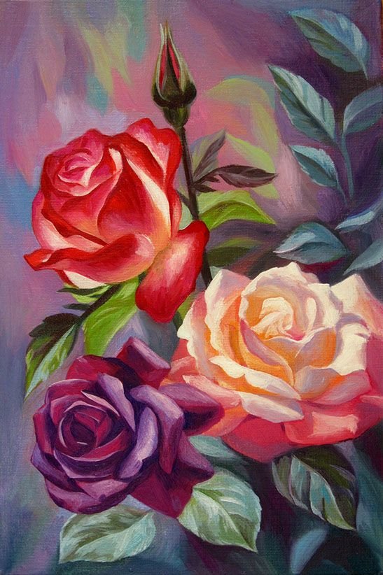 Теги: цветы, птица, живопись, розы.