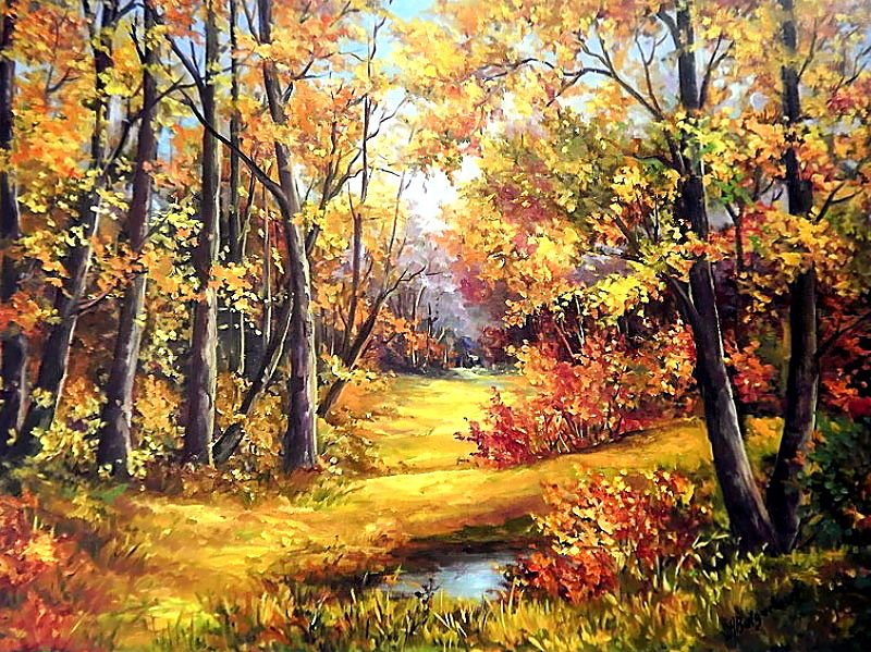 Теги: живопись, горный пейзаж, яркий осенний пейзаж.