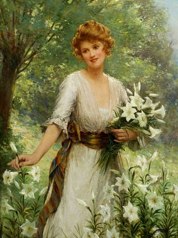 Схемы вышивки, похожие на «девушка с лилиями» (№1773474) по сюжету