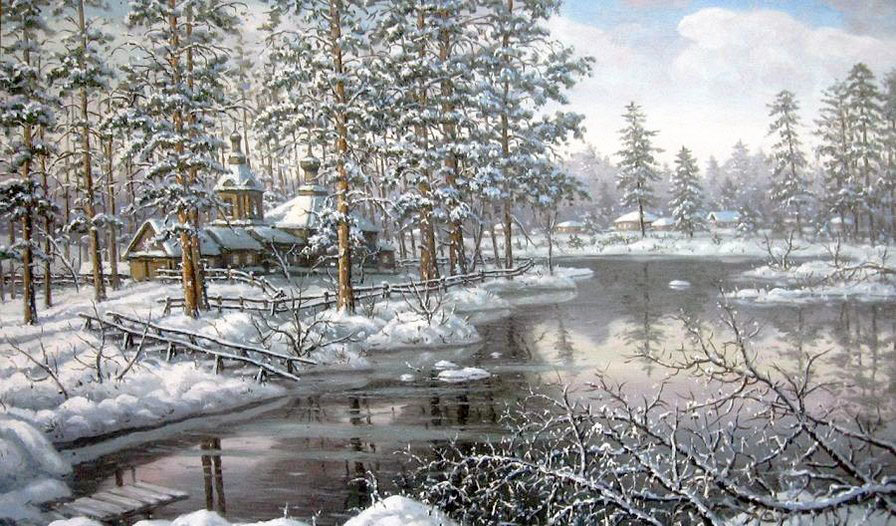 Теги: церковь, пейзаж зима, город, снег.