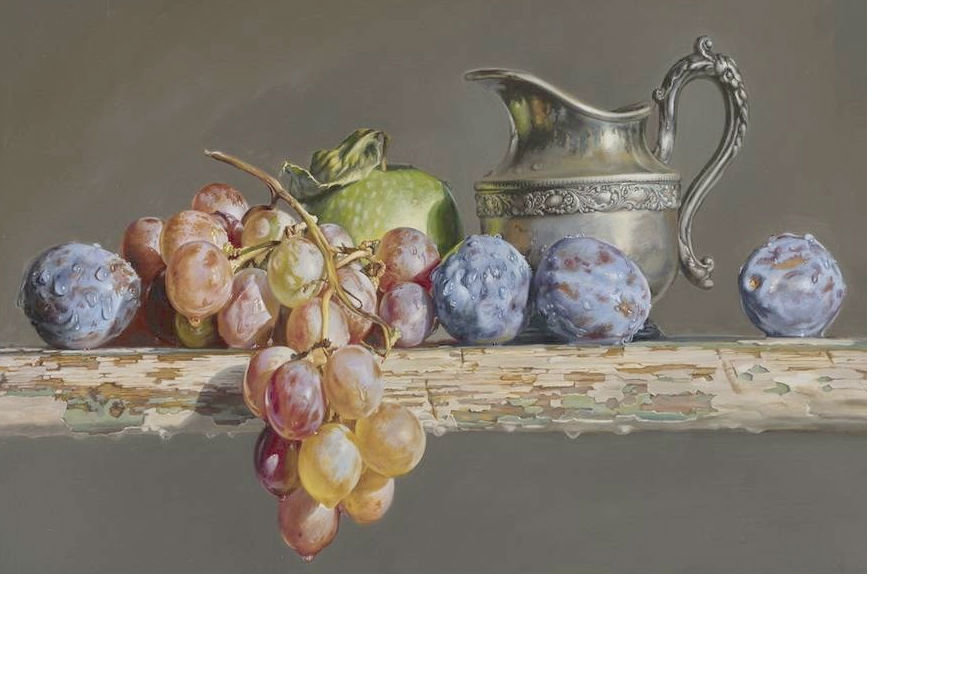 Теги: кувшин, фрукты, натюрморт, картина, виноград.