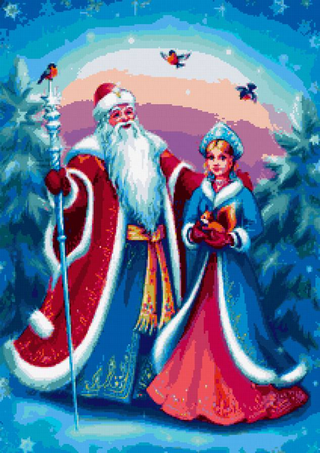 Комментарии к схеме вышивки «Дед Мороз и Снегурочка» (№180690)