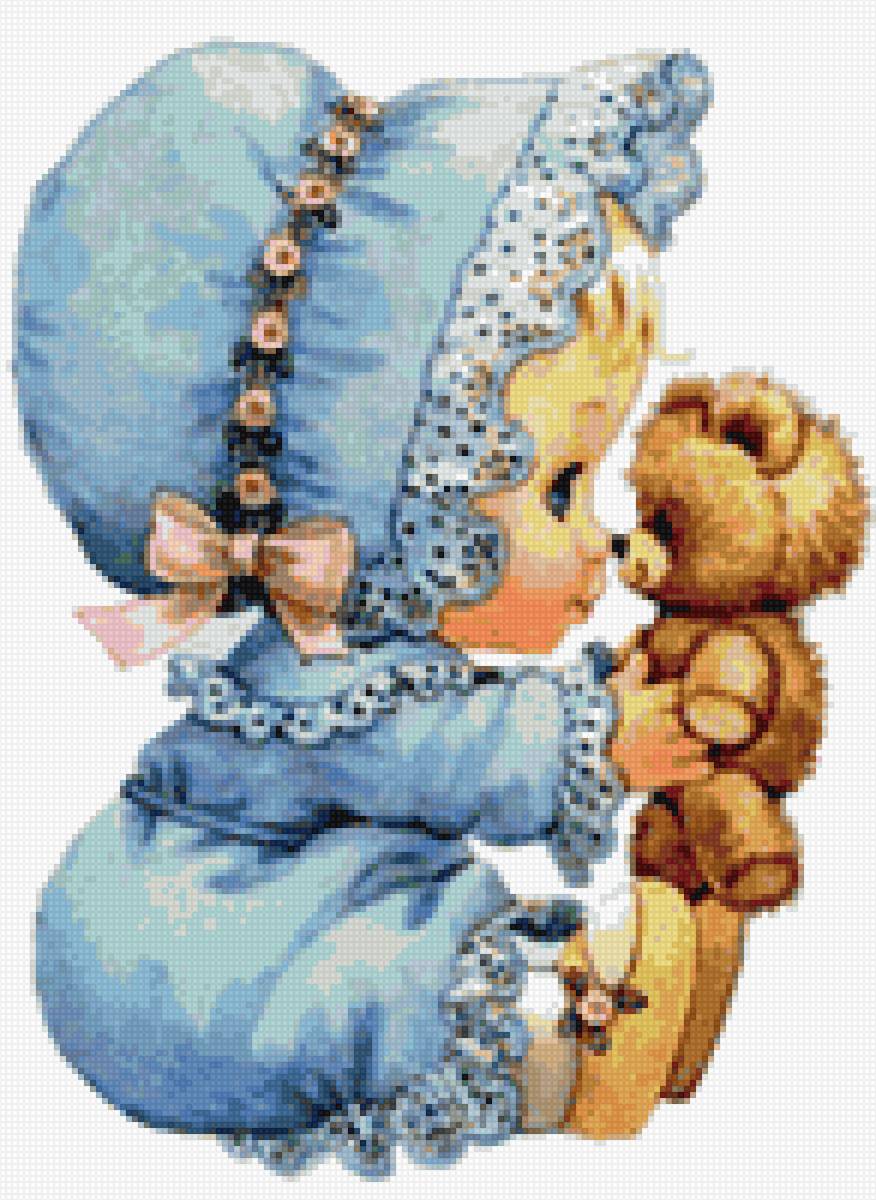 Схема вышивки «Девочка с мишкой» (№1812023)