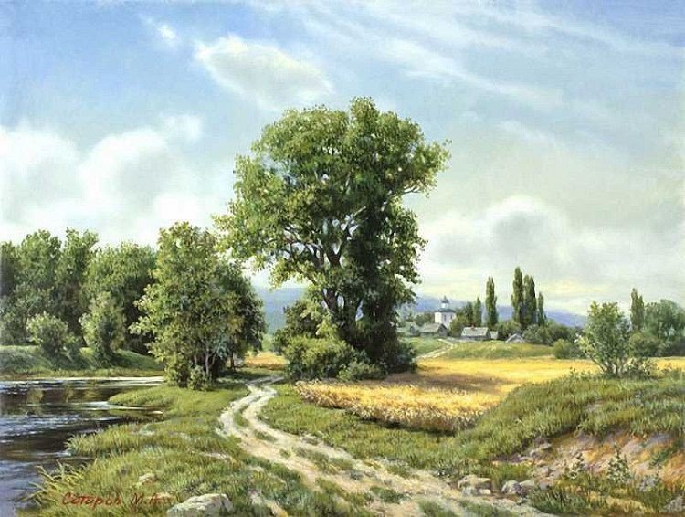 Теги: михаил сатаров, река, картина, лес, пейзаж, лето.
