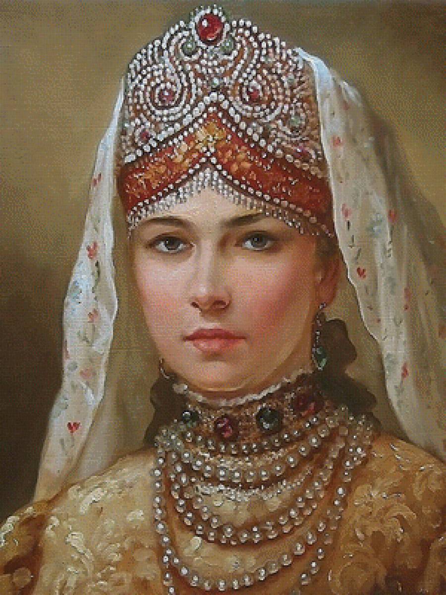 Схема вышивки «девушка в кокошнике» (№1841328)