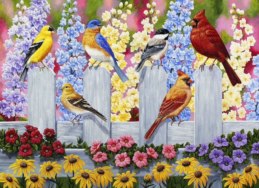 Схема вышивки «Птицы на заборе» (№1844769)