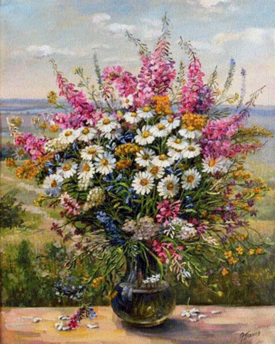 Теги: натюрморт, цветы, живопись, ромашки.