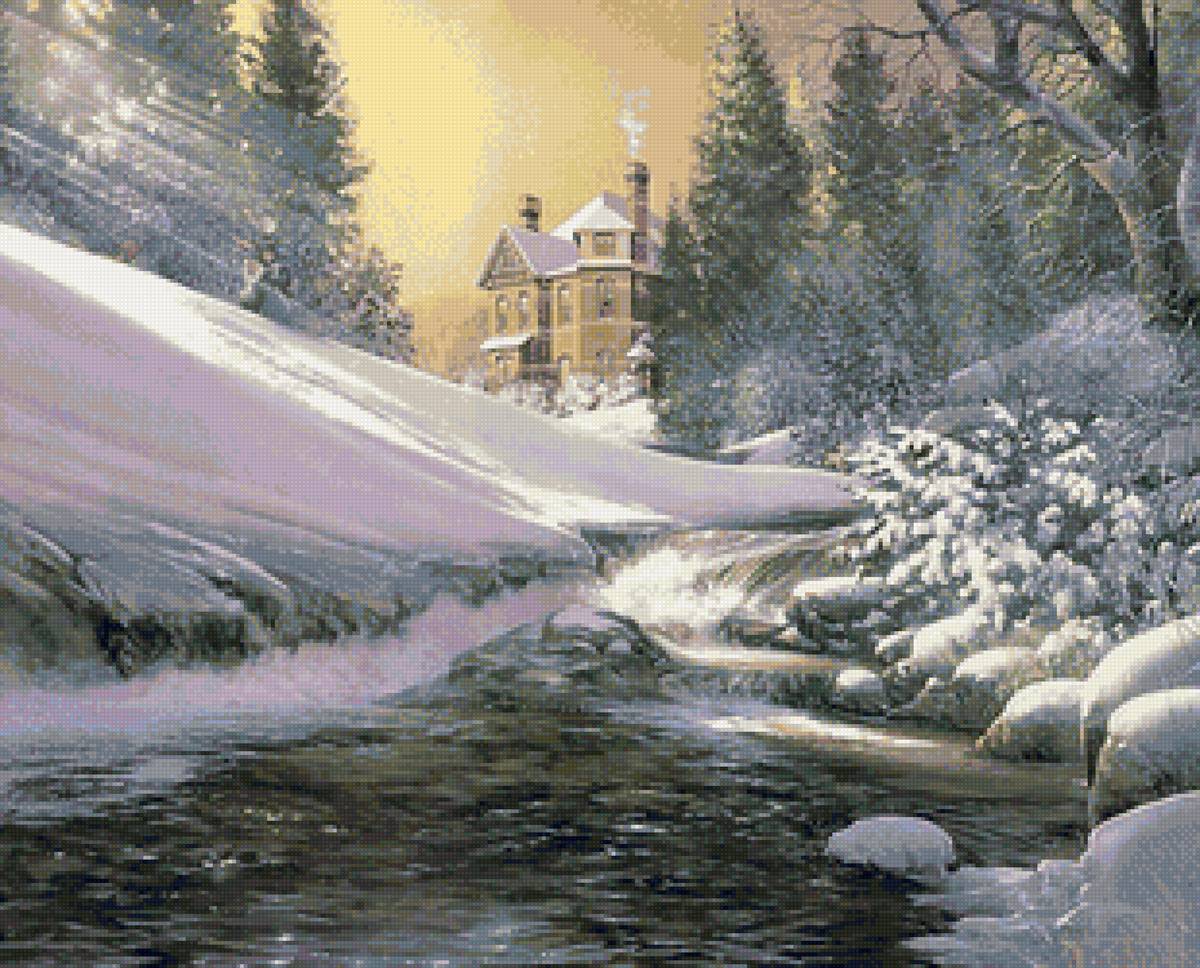 Теги: река, лес, зима, пейзаж, снег, деревня, природа.