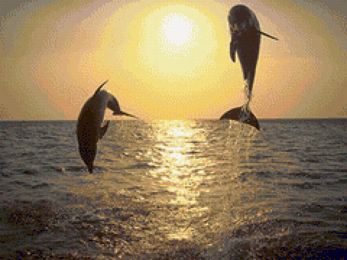 Схема вышивки «Дельфины на закате» (№1862360)