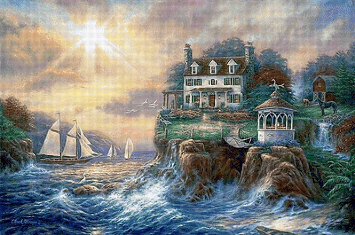 Теги: живопись, малышка, ребенок, море, морской пейзаж, соломенная шляпка.