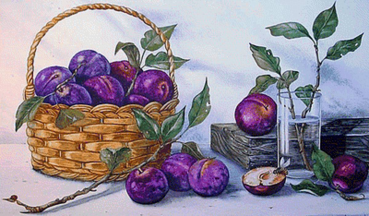 Теги: сливы, рябина, осень, виноград, натюрморт.
