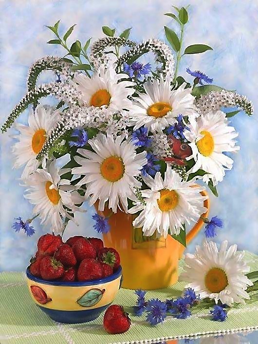 Схемы вышивки, похожие на «цветочно-ягодный натюрморт» (№1867166) по сюжету