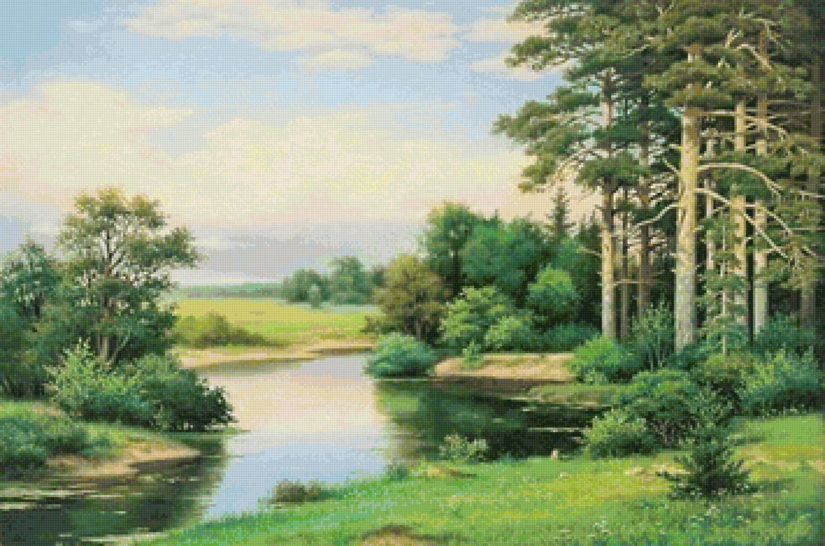 Теги: лето, река, живопись, природа, пейзаж, закат, лес.